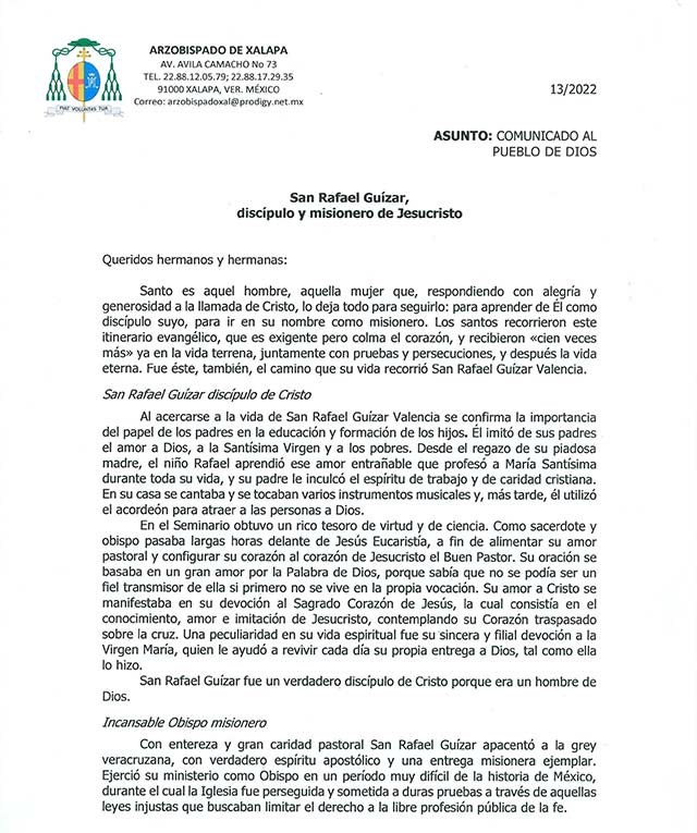 Este año celebración a San Rafael Guízar será sin restricciones de asistencia
