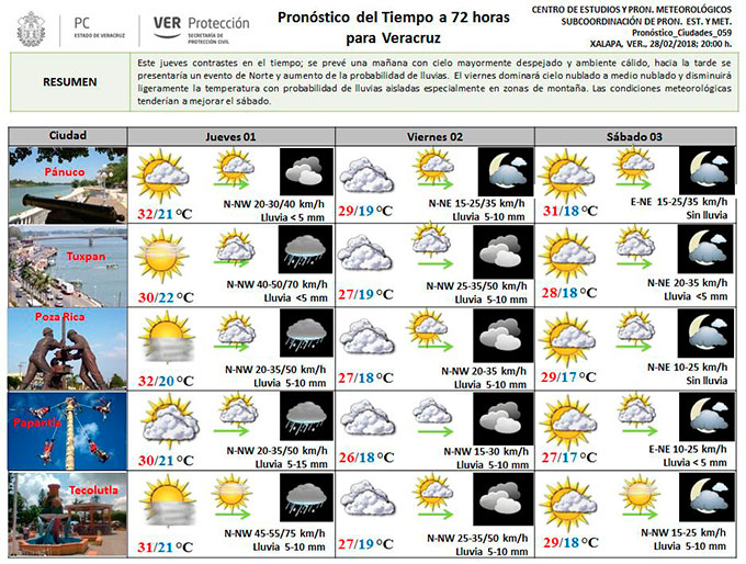 Este jueves contrastes en el tiempo: se prevé una mañana cálida con cielo despejado, hacia la tarde habría “Norte” y aumento de lluvias. El viernes estará nublado y disminuirá ligeramente la temperatura