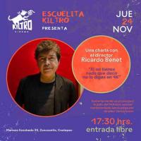 El cineasta veracruzano Ricardo Benet ofrecerá en Kiltro Cinema, ubicado en Mariano Escobedo 35, en Zoncuantla, Coatepec, una charla sobre su trabajo fílmico, la tarde de este jueves a partir de las 17:30 horas, posteriormente se proyectará la película “Noticias Lejanas”, la multipremiada ópera prima del director de cine. Entrada libre.