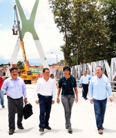 Por su parte, el Director de Obras Públicas, arquitecto, Carlos Alejandro Lara, mencionó que la obra que será uno de los referentes de Xalapa, por la monumental X que se erige sobre el puente, ya está físicamente en un 80 por ciento de avance, “en el área del antiguo puente, que ahora será peatonal, se van a hacer unos pavimentos con algunos estampados, se van a poner unas bancas, algunas jardineras, acciones de electrificación, lámparas, y unos murales que se van a realizar”, puntualizó.