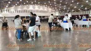 En total se instalaron 6 módulos de vacunación en el municipio, uno de los mas grandes es el del World Trade Center, en donde la jornada arrancó en calma, desde temprano acudieron a hacer fila y antes de las 8 de la mañana se dio ingreso a las personas para colocarlos en los salones Tajín a espera de la aplicación del biológico.