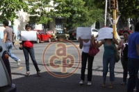 Los alumnos se manifestaron en las afueras de la escuela con cartulinas, mostrando su enojo al aumento a las colegiaturas y solicitando la intervención de las autoridades de la Secretaría de Educación Pública.