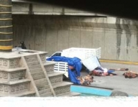 Envío fotos -evidencia- de los cuerpos que tiraron el día de hoy frente a Plaza Américas hoy a las 17:00 aproximadamente; Eran 5 sujetos en una camioneta blanca que cerraron el carril inferior de la glorieta frente a dicha plaza y como se observa en las fotos, otras 2 camionetas empezaron a bajar cuerpos! Todo el movimiento de estas personas (con ametralladora y cubiertos del rostro) duró aproximadamente 20 minutos. Yo estuve ahí!