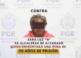 La Fiscalía General del Estado (FGE) de Veracruz informó que obtuvo una sentencia condenatoria contra la exalcaldesa de Alvarado, Sara Luz “N”, quien ocupara el cargo en el periodo 2011-2013. La pena impuesta es de 20 años de prisión por el delito de homicidio doloso calificado.