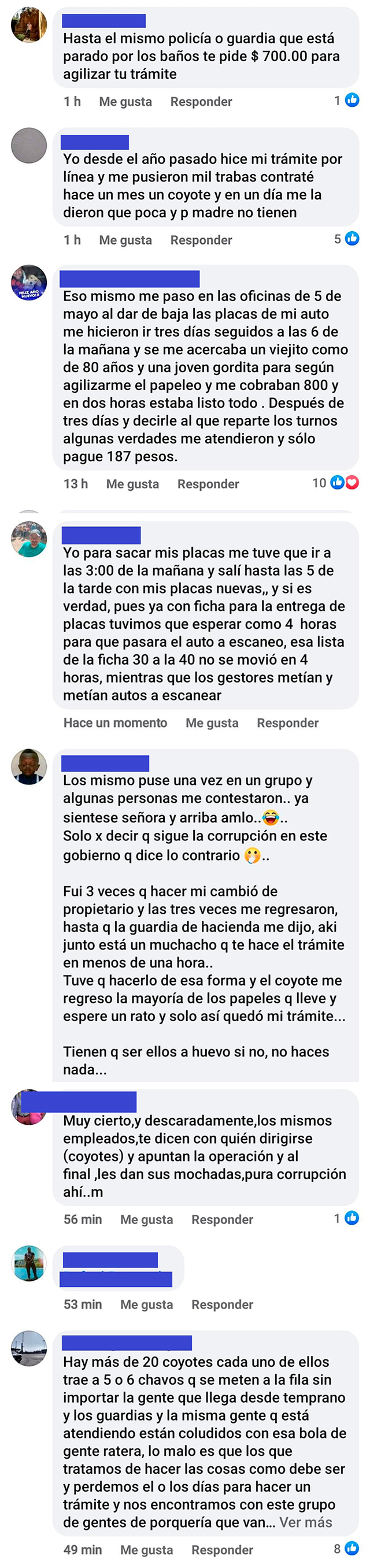 "Yo para sacar mis placas me tuve que ir a las 3:00 de la mañana y salí hasta las 5 de la tarde con mis placas nuevas. Y si es verdad, pues ya con ficha para la entrega de placas tuvimos que esperar como 4 horas para que pasara el auto al escaneo, es alista de la ficha 30 a la 40 no se movió en 4 horas, mientras que los gestores metían y metían autos a escanear".