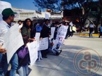 Con mantas y pancartas los poco más de 40 jóvenes se movilizaron por las diversas avenidas bloqueando el paso a los autobuses de transporte urbano y también a los automovilistas, quienes transitaban por dichas avenidas.