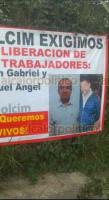 En demanda de que se libere a los dos operadores de la cementera Holcim que fueron detenidos en días pasados, familiares y amigos de Juan Gabriel Hernández López y Miguel Ángel Monsiváis Martínez colocaron lonas en cinco municipios de la zona centro.