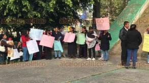 Padres de familia de la telesecundaria “Fernando Montes de Oca”, de la comunidad Ignacio Zaragoza, en Altotonga, se manifestaron en la entrada de la Secretaría de Educación de Veracruz, para exigir la designación de un docente, pues desde hace tres años carecen de uno.