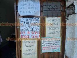 En el edificio donde se ubican las oficinas del Instituto Veracruzano de Educación para los Adultos (IVEA), fueron colocadas cartulinas con diversas consignas, pero todas encaminadas a exigir se les otorgue un salario digno.