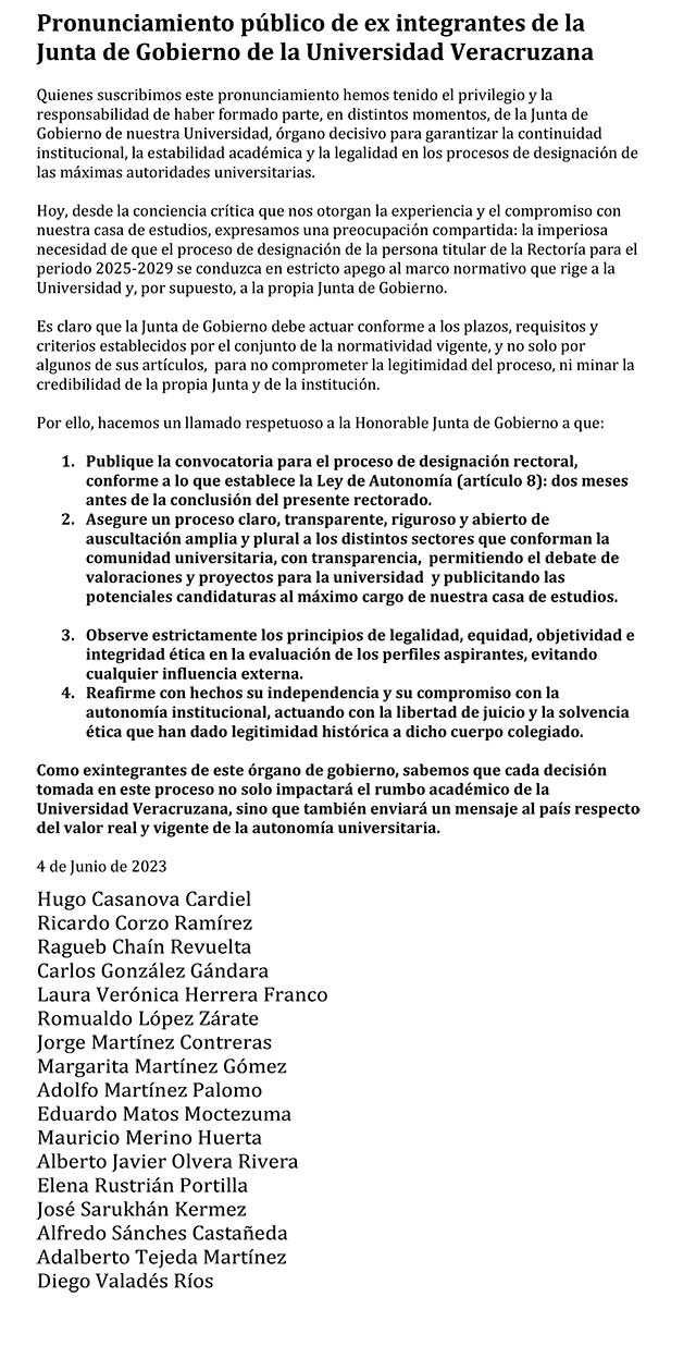 - Que la Junta reafirme con hechos su independencia y compromiso con la autonomía institucional