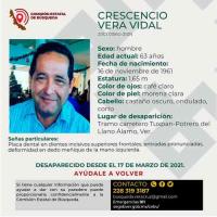 Crescencio Vera, ampliamente reconocido en la región norte del Estado, fungió como presidente municipal de Tepetzintla de 1995 a 1997. Además, su yerno, Julio César González Cárdenas, fue precandidato a la presidencia municipal de ese municipio por el partido Movimiento Regeneración Nacional (MORENA). La Comisión Estatal de Búsqueda mantiene vigente la ficha para su localización.