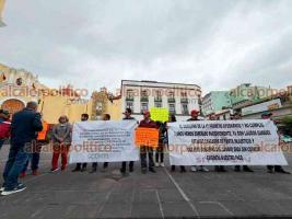 Extrabajadores del extinto Seguro Popular pertenecientes al Sindicato de Trabajadores del Régimen Estatal de Protección Social en Salud de Veracruz se manifestaron en plaza Lerdo para pedir la intervención del Gobierno del Estado para que se agilice el pago de laudos ganados.