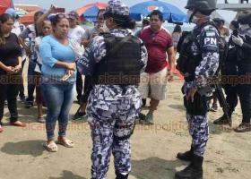 Aunque la Policía Naval llegó para pedir a las personas que se fueran a sus casas, los elementos fueron “corridos” por palaperos, quienes en fechas recientes han protestado para pedir apoyo pues la contingencia de coronavirus ha tirado sus ventas.