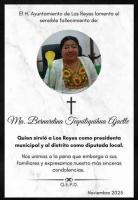 La exdiputada local y dos veces alcaldesa del municipio de Los Reyes, Bernardina Tequiliquihua Ajactle, falleció este fin de semana. Su deceso fue confirmado por el Ayuntamiento de Los Reyes a través de sus redes sociales.