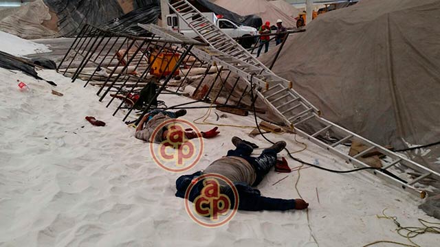 Coatzacoalcos, Ver., 18 de mayo de 2016.- 2 muertos y un obrero lesionado tras accidente sobre andamio dentro de la bodega Fypa Fertilizantes, en el Complejo Petroquímico Morelos de la zona industrial.