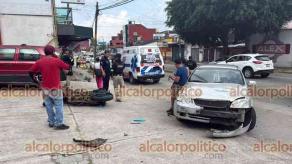 Familia a bordo de moto se impactó con auto, en avenida Chedraui Caram, en Xalapa