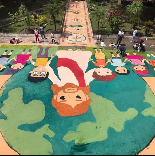 Coatepec, Ver., 30 de septiembre de 2023.- Ayer viernes, con temática de la familia se elaboró la alfombra de aserrín en la fiesta patronal de San Jerónimo; esta tradición data de 15 años y en esta ocasión fue organizada por el Movimiento Familiar Cristiano.