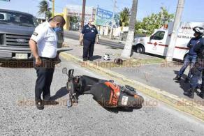 En la avenida Miguel Alemán a la altura de la colonia Adolfo López Mateos en la ciudad de Veracruz la tarde de este miércoles una familia en motocicleta se accidentó al ser impactada por una camioneta Ford, quedando con golpes una mujer y un menor de un año de edad.