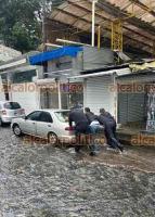 La mañana de este domingo, una familia quedó atrapada dentro de su vehículo tras quedar varados sobre la calle Jesús López Domínguez, a un costado de la Plaza Museo, en la colonia Obrero Campesina, debido al incremento del nivel del agua por las intensas lluvias registradas en la capital veracruzana.