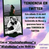 Este 23 de abril, se cumple un año del feminicidio y han pedido que a las 18 horas, usuarios entren para compartir mensajes para exigir #JusticiaparaMontse, asimismo, agregar #FaltaMarlon.