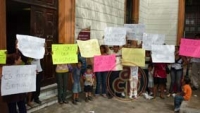 Los hechos ocurrieron en la avenida Ignacio Allende, esquina Cortés, fuera de los juzgados de primera instancia, en donde cerca de 25 personas entre hombres, mujeres y niños con pancartas se apostaron a las afueras del recinto para hacerse escuchar.