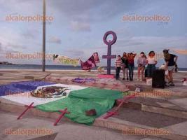 Mujeres Feministas del Puerto de Veracruz, colocaron una "anti ofrenda " en la plaza de la Soberanía del puerto para alzar la voz por las víctimas de feminicidios y violencia.