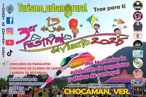 Este festival está conformado por tres actividades principales: el Trail del Viento, una carrera de montaña; el Trip del Viento, un recorrido turístico guiado y el evento central del Festival del Viento, que se celebrará el próximo 13 de julio con actividades culturales, concursos y espectáculos en el municipio de Chocamán.