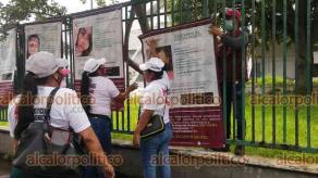 Familiares de desaparecidos colocaron fichas de búsqueda en la barda del Auditorio "Benito Juárez" de la ciudad de Veracruz. Son aproximadamente 100 fotografías que muestran los datos para que se dé aviso en caso de saber algo de ellos.
