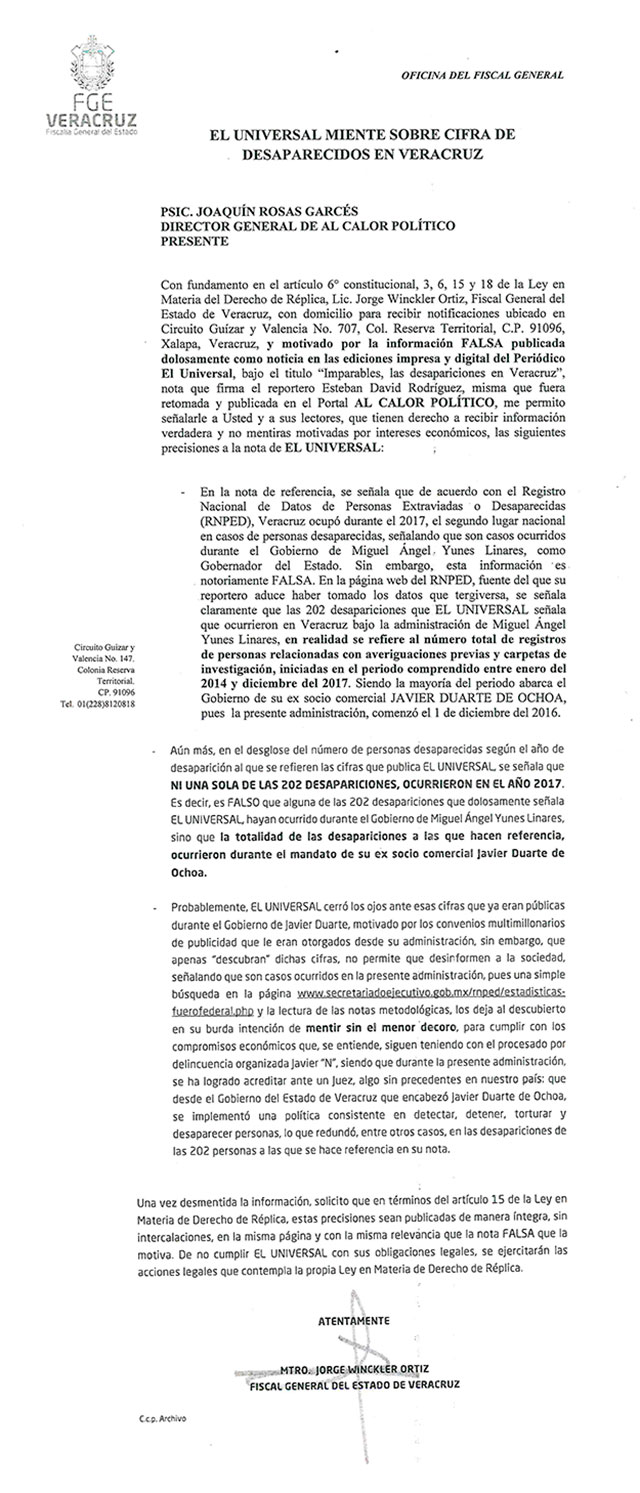 Fiscalía: El Universal miente sobre cifra de desaparecidos en Veracruz
