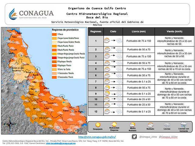 Atienda las indicaciones que emitan las Secretarías de Protección Civil Estatales y Capitanía de Puertos. Manténgase informado de las actualizaciones del pronóstico del tiempo.