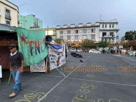 Debido al riesgo de incendio por el uso de pirotecnia en la Noche del Grito, personal del Gobierno de Veracruz solicitaron a integrantes del Frente Nacional de Lucha por el Socialismo (FNLS) el retiro temporal de dicho campamento instalado en Plaza Lerdo.