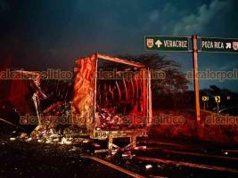 La noche de este miércoles, el contenedor del tráiler del Servicio Público Federal con razón social MLCM, originario de Pachuca, se incendió en la autopista Xalapa-Veracruz a la altura del libramiento de Cardel.
