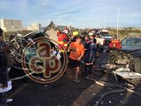 Esto se dio sobre el puente del Nuevo Veracruz, en esta ciudad de Veracruz. En el accidente se vieron involucrados una camioneta marca Renault tipo Duster y un auto marca Nissan tipo Platina que se desbarataron por el brutal impacto.