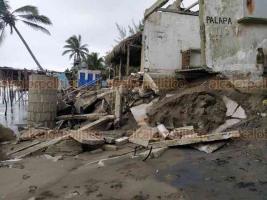 Fuerte oleaje afecta a palaperos en costa de Tecolutla, este viernes