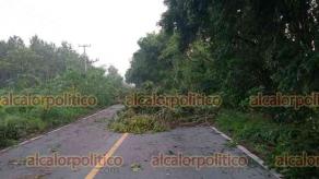 En la carretera Las Choapas-Cerro de Nanchital a la altura de La Herradura, hubo árboles de gran altura y peso caídos que provocó el cierre temporal de la avenida, misma donde al amanecer se tuvo que trabajar con maquinaria pesada para mover los troncos.