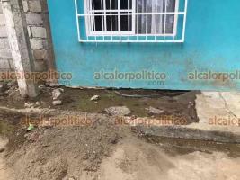 En la colonia Venustiano Carranza de Boca del Río una fuga de agua potable está causando daños estructurales a una vivienda donde se presentó un gran socavón por el agua que se escurre de la tubería subterránea y hasta el momento la empresa CAB no ha dado respuesta a la problemática. El temor es que la fuga debilite los cimientos y se venga abajo un poste afuera de la casa.