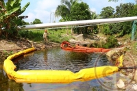El problema se registró durante la madrugada de este lunes y desde las primeras horas, personal de la compañía PJP4 y TETSA, realizan las labores de limpieza y recuperación del crudo derramado, utilizando "grapas", para contener la contaminación, misma que ha afectado unos mil 700 metros del arroyo y una parcela, por lo que los pobladores exigen una pronta solución.
