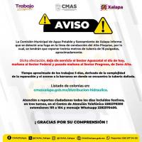 El organismo exhortó a la población a tomar previsiones y consultar el listado completo de colonias afectadas en la página cmasxalapa.gob.mx/distribucion-hidraulica.