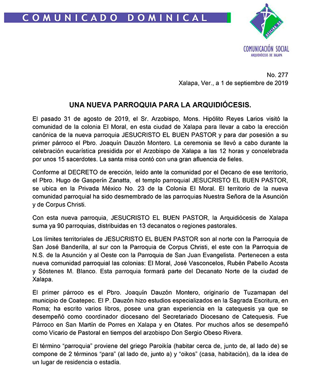Funda Arquidiócesis de Xalapa nueva parroquia Jesucristo el Buen Pastor