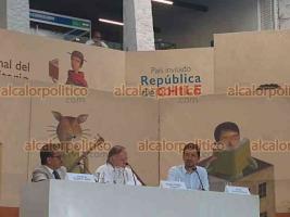 El director de la Biblioteca Nacional de Chile, Pedro Zegers Blachet, recién galardonado con la medalla al Mérito Universidad Veracruzana, acompañado del representante de Negocios de la Embajada de Chile en México, Jorge Vidal Rodríguez, y del cronista de Xalapa, Vicente Espino Jara; presentaron el conservatorio "Centenario de la llegada de Gabriela Mistral a México “en la FILU 2022.