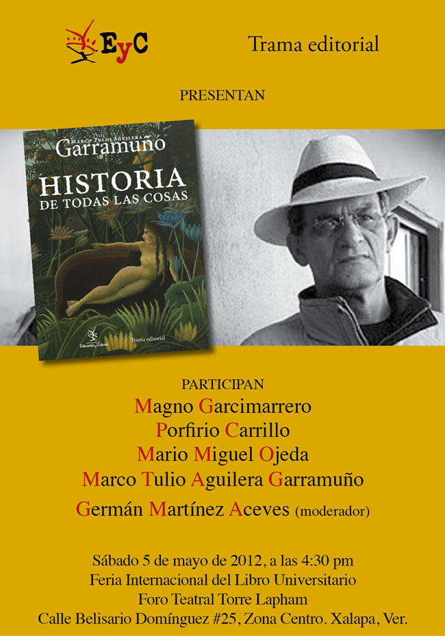 Ah, bueno, antes de despedirme otra vez, quiero aprovechar la oportunidad para invitar a Elizabeth Morales y a sus seguidores y al público en general, a la presentación de mi novela “Historia de todas las cosas”, que será el próximo sábado, a las 4 30 en el Foro Teatral Torre Lapham en la Unidad de Artes, en el marco de la Feria del Libro Universitario.