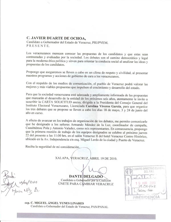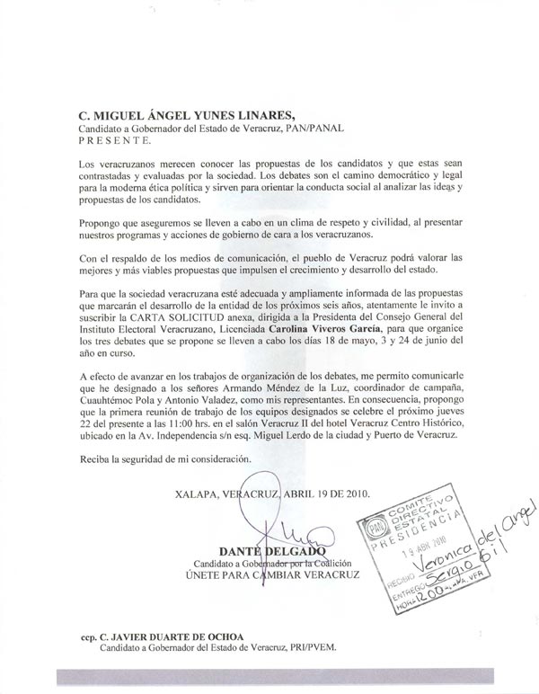 Gira Dante Delgado invitaciones a Duarte y Yunes para debatir propuestas de gobierno