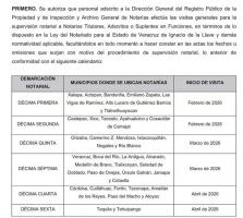 La Secretaría de Gobierno informó que las visitas estarán a cargo de la Dirección General del Registro Público de la Propiedad y de Inspección y Archivo General de Notarías, con revisiones a protocolos, libros y procedimientos.
