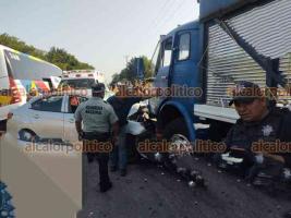 La mañana de este domingo, chocaron un camión tipo tortón y un automóvil articular en la carretera federal 129 Amozoc-Nautla, a la altura de la empresa Citrofrut, cerca de la localidad de Paso Largo, en el municipio de San Rafael. No se reportaron personas heridas de gravedad.
