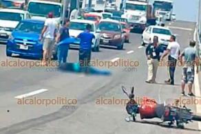 Un motociclista quedó gravemente herido tras presuntamente derrapar bajando el puente de Las Amapolas en la carretera federal Veracruz-Xalapa.