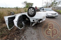 En la carretera estatal Veracruz-Santa Rita, cerca de la comunidad de Santa Rita, perteneciente al municipio de Veracruz, ocurrió la volcadura de un automóvil particular tipo Corsa, luego de que derrapara la unidad con la gravilla suelta. Los ocupantes son miembros de una familia que regresaba del panteón de Soledad de Doblado.