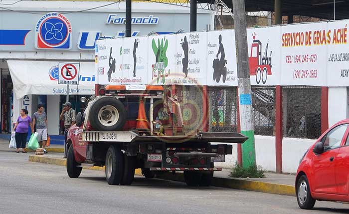 Acayucan, Ver., 29 de junio de 2015.- El señalamiento es claro y pese a eso, esta grúa se encuentra estacionada en un lugar prohibido. ¿Qué grúa se llevará a esta grúa? se preguntan los ciudadanos.