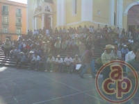 Alrededor de las 16:15 horas ya había congregados alrededor de 200 pobladores, una hora más tarde unos 500 que se acomodaron en las escalinatas de la Catedral, pero aseguran que vienen en camino 4 mil personas en 400 camionetas y camiones.