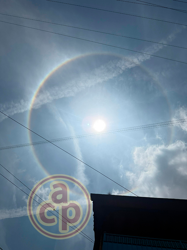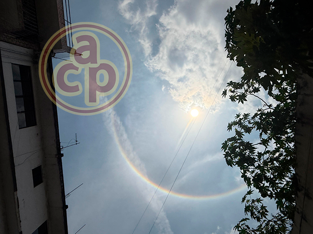 Xalapa, Ver., 24 de mayo de 2025.- Al mediodía de este sábado, se observó un halo alrededor del astro rey, lo que sorprendió a los capitalinos.