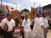 Fueron recibidos en el punto llamado La Cruz y ahí el párroco se pronunció contento de ver a cientos de ciclistas, hombres y mujeres a caballo o a pie que derraman fe cada año para venir a manifestar su devoción por la virgen en Catemaco.